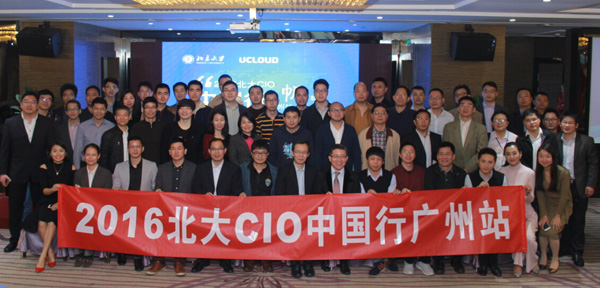 2016年3月19日,全新的“2016北大CIO中國行廣州站”在廣州麗柏國際酒店順利舉行,來自華南地區(qū)的80多位CIO、CEO參與了此次活動,深入探討了互聯(lián)網(wǎng)+時代的創(chuàng)業(yè)與創(chuàng)新新舉措。本次活動由UCloud獨家冠名,同時得到了寶存科技、北京因特睿、銷售易、圓舟科技、全時等眾多合作伙伴的支持與參與。