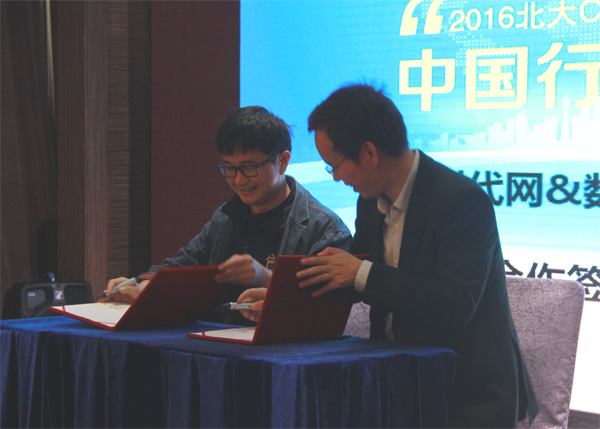 隨后,CIO時代網(wǎng)與數(shù)據(jù)價值網(wǎng)進行了戰(zhàn)略合作簽約儀式。CIO時代信息化學(xué)院院長陳其偉先生為本次簽約儀式致辭,希望通過合作打造一個共生、互生、重生的環(huán)境。數(shù)據(jù)價值網(wǎng)總經(jīng)理、聯(lián)合創(chuàng)始人何濤先生致辭,希望通過二者的合作在未來互聯(lián)網(wǎng)+的道路上能夠書寫傳奇。隨后雙方代表共同上臺簽署合作協(xié)議。