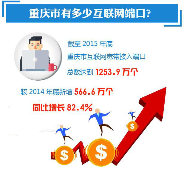 報(bào)告顯示,截至 2015 年底,重慶市光纜線路總長(zhǎng)度達(dá)到 65.4萬(wàn)公里,同比增長(zhǎng)11.8%;互聯(lián)網(wǎng)寬帶接入端口總數(shù)達(dá)到 1253.9 萬(wàn)個(gè),較2014 年底新增 566.6 萬(wàn)個(gè),同比增長(zhǎng) 82.4%。重慶市互聯(lián)網(wǎng)寬帶接入用戶中,速率在 8M 以上用戶占比 75.3%,較 2014 年提高 42.4 個(gè)百分點(diǎn),居全國(guó)第 17位。其中,速率在 20M 以上的寬帶用戶達(dá)到 189.3 萬(wàn)戶,占比達(dá)到 37.4%,居全國(guó)第 15 位。重慶市移動(dòng)電話基站數(shù)達(dá)到 9.0 萬(wàn)個(gè),較 2014 年底新增 1.6 萬(wàn)個(gè),同比增長(zhǎng) 21.6% ;WLAN 公共運(yùn)營(yíng)接入點(diǎn)(AP)數(shù)達(dá)到 13.0 萬(wàn)個(gè);3G 基站數(shù)達(dá)到2.8萬(wàn)個(gè),較2014年新增0.1萬(wàn)個(gè),同比增長(zhǎng)3.7%;4G基站數(shù)達(dá)到3.0萬(wàn)個(gè)??梢钥闯?,目前重慶市的網(wǎng)絡(luò)成長(zhǎng)能力大幅提升,網(wǎng)絡(luò)基礎(chǔ)設(shè)施已具備為重慶市“互聯(lián)網(wǎng) +”發(fā)展提供堅(jiān)實(shí)基礎(chǔ)的條件。2015年,重慶市網(wǎng)絡(luò)基礎(chǔ)設(shè)施建設(shè)日趨完善。