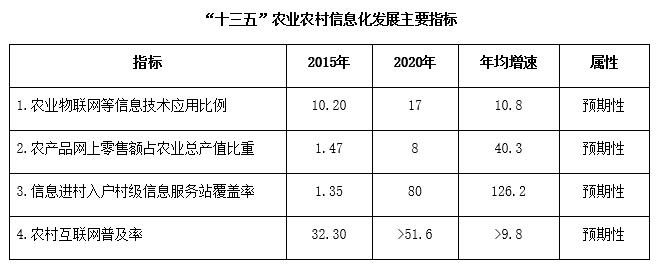 “十三五”全國農(nóng)業(yè)農(nóng)村信息化發(fā)展規(guī)劃