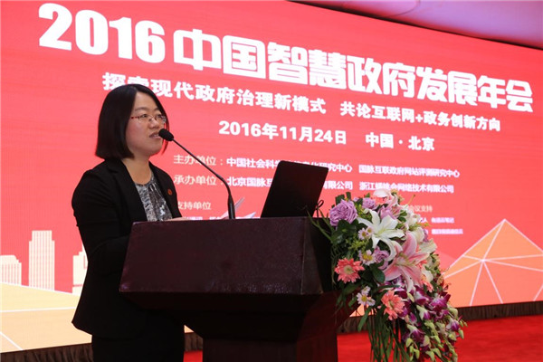 國脈互聯(lián)副總經(jīng)理、資深咨詢師俞萍發(fā)布了《2016中國政府網(wǎng)站發(fā)展研究報告》,并現(xiàn)場公布了“2016中國‘互聯(lián)網(wǎng)+政務’優(yōu)秀實踐案例50強評選結(jié)果”,并為“互聯(lián)網(wǎng)+政務”50強舉行了頒獎儀式。