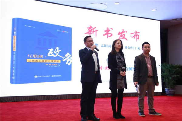 會議現(xiàn)場舉行了《互聯(lián)網(wǎng)+政務:從施政工具到治理賦能》新書發(fā)布儀式,電子工業(yè)出版社總編輯劉九如、國脈研究院院長唐鵬和騰訊研究院副院長孟昭莉出席發(fā)布儀式。本書是國脈研究院和騰訊研究院在“互聯(lián)網(wǎng)+政務”領(lǐng)域的深度研究成果,對政務服務從PC互聯(lián)網(wǎng)到移動互聯(lián)網(wǎng)再到人工智能時代的服務體驗、模式、能力、價值等進行了深入研究分析,是中國首部“互聯(lián)網(wǎng)+政務”前沿洞察讀本。