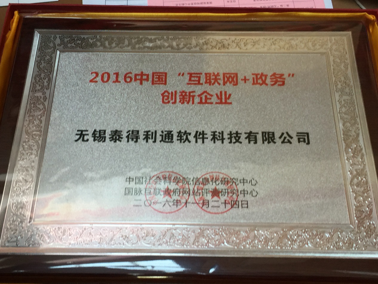 泰得利通榮獲2016中國"互聯(lián)網(wǎng)+政務"創(chuàng)新企業(yè)
