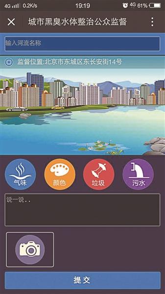 而由環(huán)保部和住建部聯(lián)合創(chuàng)建的微信公眾號(hào)“城市水環(huán)境公眾參與”,除了設(shè)置有監(jiān)督舉報(bào)黑臭水體的功能,還可通過微信進(jìn)行自動(dòng)定位,工作人員可根據(jù)舉報(bào)位置迅速來現(xiàn)場(chǎng)調(diào)查。