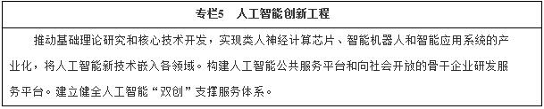 (五)發(fā)展人工智能。培育人工智能產(chǎn)業(yè)生態(tài),促進人工智能在經(jīng)濟社會重點領(lǐng)域推廣應用,打造國際領(lǐng)先的技術(shù)體系。