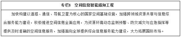(三)做大做強衛(wèi)星及應用產(chǎn)業(yè)。建設自主開放、安全可靠、長期穩(wěn)定運行的國家民用空間基礎(chǔ)設施,加速衛(wèi)星應用與基礎(chǔ)設施融合發(fā)展。到2020年,基本建成主體功能完備的國家民用空間基礎(chǔ)設施,滿足我國各領(lǐng)域主要業(yè)務需求,基本實現(xiàn)空間信息應用自主保障,形成較為完善的衛(wèi)星及應用產(chǎn)業(yè)鏈。