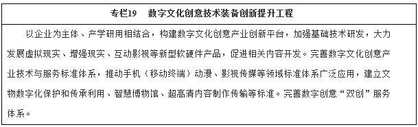 (一)創(chuàng)新數(shù)字文化創(chuàng)意技術(shù)和裝備。適應沉浸式體驗、智能互動等趨勢,加強內(nèi)容和技術(shù)裝備協(xié)同創(chuàng)新,在內(nèi)容生產(chǎn)技術(shù)領(lǐng)域緊跟世界潮流,在消費服務裝備領(lǐng)域建立國際領(lǐng)先優(yōu)勢,鼓勵深度應用相關(guān)領(lǐng)域最新創(chuàng)新成果。