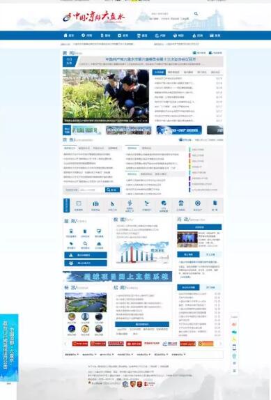 首頁采用了扁平化設(shè)計(jì)理念,以藍(lán)色作為主色調(diào),搭配灰白背景,并恰當(dāng)把握色彩的明度和亮度,體現(xiàn)政府網(wǎng)站的權(quán)威、莊重、美觀、大方,同時(shí)運(yùn)用了主導(dǎo)航欄目下拉菜單、線性布局、柵格化設(shè)計(jì)。首頁采用現(xiàn)代而富有設(shè)計(jì)感的水墨畫風(fēng)格,巧妙的突出六盤水特色,并將要聞、政務(wù)、服務(wù)、問政、暢游、招商、數(shù)據(jù)直觀的在首頁呈現(xiàn),用戶可根據(jù)自己的需求,直接進(jìn)入相關(guān)的信息或欄目,體現(xiàn)了網(wǎng)站“以人為本”的服務(wù)理念。