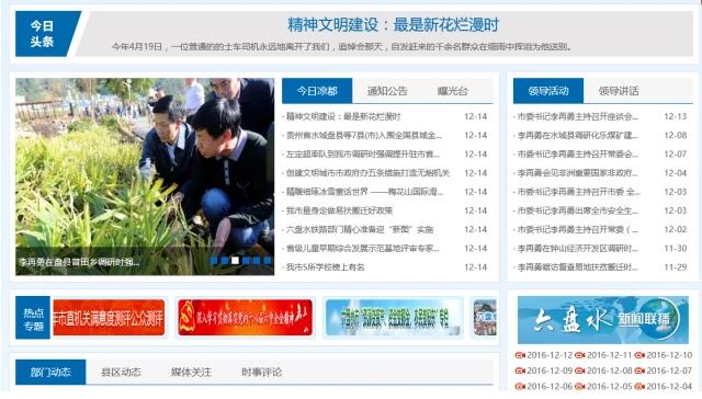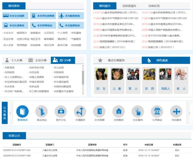 六盤水市人民政府網(wǎng)2016年全新改版,此次改版工作由六盤水市電子政務(wù)辦公室牽頭,邀請北京國脈互聯(lián)信息顧問有限公司進(jìn)行規(guī)劃設(shè)計(jì),貴州多彩博虹科技有限公司進(jìn)行技術(shù)開發(fā)。圍繞服務(wù)型政府網(wǎng)站建設(shè)要求,著重從用戶需求和實(shí)際體驗(yàn)出發(fā),將提升網(wǎng)站的用戶滿意度作為重要原則,將服務(wù)化、集成化、實(shí)用化、個(gè)性化、開放化作為重要目標(biāo),努力打造“以用戶為中心、以服務(wù)為導(dǎo)向”的一流服務(wù)型政府網(wǎng)站。