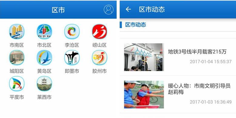 新增的區(qū)市版塊,整合了青島六區(qū)四市熱點要聞,匯集地方實時動態(tài),第一時間發(fā)布政務要聞。市民通過智慧青島手機客戶端就可以了解所有區(qū)市的最新資訊,洞察青島重要政策的落地效果及未來走向。