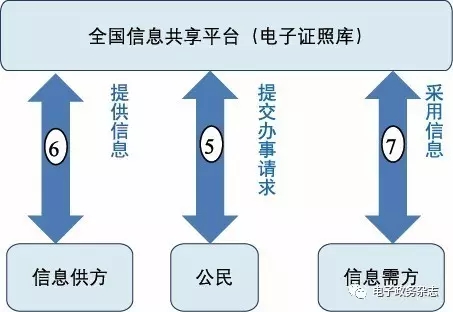 上述分析表明,事項(xiàng)中存在跨省跨部門(mén)跨層級(jí)的A類共享時(shí),只能依靠市民“跑腿”辦證,信息共享無(wú)法實(shí)現(xiàn)。因此,“三跨”是所有共享類型中最困難的一類,從理論上可以推斷,能解決此類信息共享的措施,也能解決其他任意類型的信息共享。如果“三跨”共享能夠?qū)崿F(xiàn),公民辦事將不需要在政府機(jī)構(gòu)間傳遞任何紙質(zhì)證明文件。