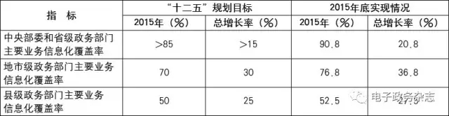 表1 “十二五”末期政務(wù)業(yè)務(wù)信息化覆蓋率及增長率[1]