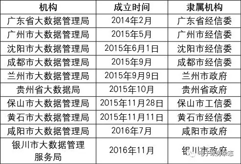 表2 地方大數(shù)據(jù)管理機構(gòu)成立情況