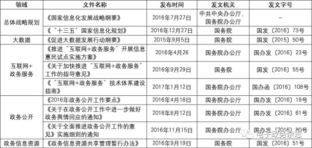 表3 近一年來國家出臺的電子政務(wù)相關(guān)政策文件