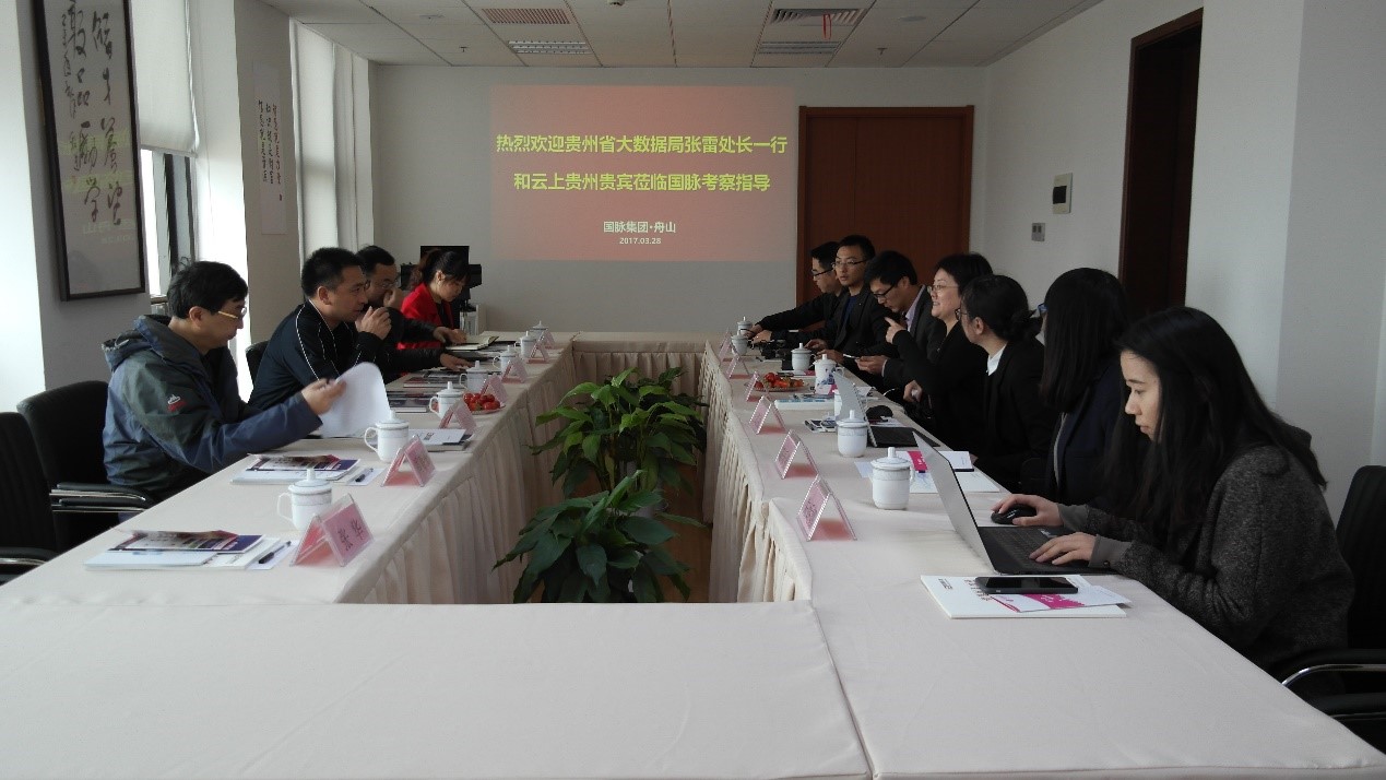 2017年3月28日,貴州省政府大數(shù)據(jù)局數(shù)據(jù)資源管理與安全處處長張雷一行蒞臨國脈集團(舟山)考察指導,并與國脈集團洽談戰(zhàn)略合作意向。