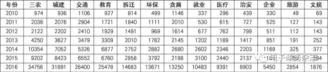 其次,從主題熱度及留言條數(shù)來(lái)看,城建(71774條)、交通(52247條)、三農(nóng)(42601條)遙遙領(lǐng)先,當(dāng)然,拆遷(33522條)、教育(30907條)、環(huán)保(27174條)、治安(16182條)、就業(yè)(11361條)、醫(yī)療(10677條)等也是網(wǎng)民關(guān)注的熱點(diǎn)(參見(jiàn)表4)。大部分是與公民切身利益相關(guān)的民生問(wèn)題,也是公民網(wǎng)絡(luò)問(wèn)政的重點(diǎn)和熱點(diǎn)。學(xué)者孟天廣利用大數(shù)據(jù)分析方法,指出經(jīng)濟(jì)發(fā)展類(lèi)議題(交通、就業(yè)、企業(yè)和文化娛樂(lè))的關(guān)注度最高,86.9%的網(wǎng)民發(fā)帖涉及該議題,民生福利類(lèi)議題(環(huán)境保護(hù)、醫(yī)療衛(wèi)生、教育和社會(huì)治安)次之,63.8%的網(wǎng)民提出相關(guān)訴求,關(guān)注國(guó)土建設(shè)類(lèi)(拆遷征地、市政建設(shè))、農(nóng)村類(lèi)和貪腐類(lèi)議題的帖子也分別占三分之一左右。[24]另外,主題熱度及留言條數(shù)也在“地方領(lǐng)導(dǎo)留言板”省級(jí)領(lǐng)導(dǎo)各職能領(lǐng)域留言量中得以反映。
