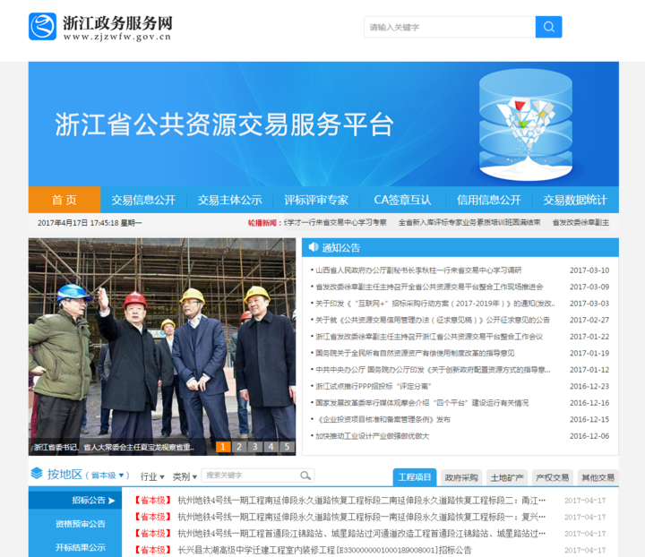 近日,浙江省公共資源交易服務(wù)平臺(tái)正式對(duì)接浙江政務(wù)服務(wù)網(wǎng),用戶打開浙江政務(wù)服務(wù)網(wǎng)首頁即可查閱全省公共資源交易信息,平臺(tái)目前已融合省重點(diǎn)建設(shè)工程招標(biāo)投標(biāo)、政府采購、礦業(yè)權(quán)出讓、國有產(chǎn)權(quán)交易4大省級(jí)交易平臺(tái)以及11個(gè)設(shè)區(qū)市、33個(gè)縣(市、區(qū))交易平臺(tái)。