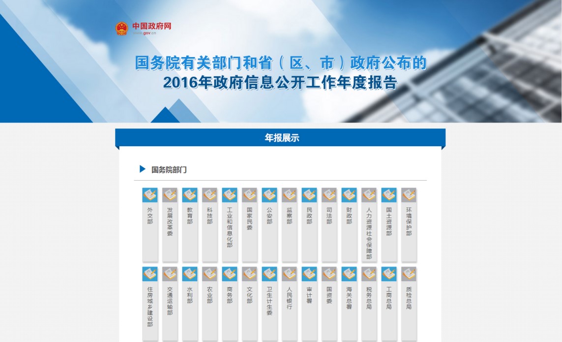 2016年政府信息公開工作年度報告展示平臺 來源:中國政府網(wǎng)
