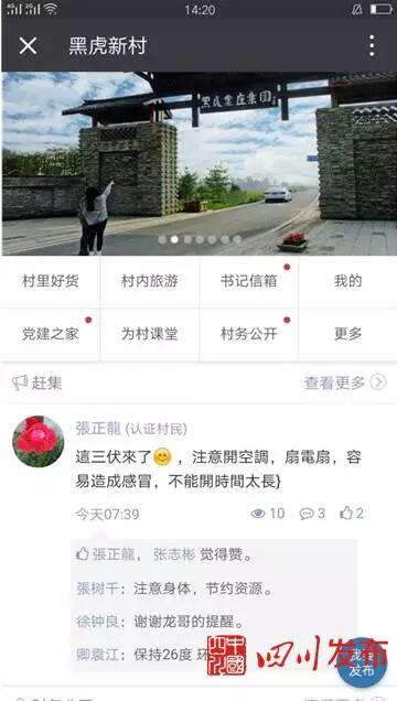 而“為村平臺”則是黑虎村群眾在網(wǎng)上的“朋友圈”,村里大事小情都可以這里反映,甚至生活趣事都分享到這里。這個強大的“朋友圈”不僅能投訴、能監(jiān)督,還能聊天兒。不少村民、村干部在這里“打”得火熱。這不,一位村民剛發(fā)上一張高速公路邊的垃圾照片,詢問是否有人去打掃。張樹千立即回復:“馬上處理?!蹦壳?,全村已有800余名村民加入認證村民?!坝羞h在外地打工的村民都通過手機上網(wǎng),在這里關心村子,行使權利。”張樹千黑黝黝的臉上滿是自豪表情。