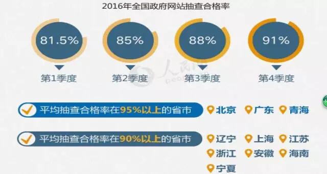 基層網(wǎng)站“建而不管”,網(wǎng)站辦不好,群眾不愛用,領導不重視, 越來越邊緣,便會陷入惡性循環(huán)。為此,繼2015年全國網(wǎng)站普查之后,2016年,國辦公開辦開展了4次季度抽查,初步解決了“不及時、不準確、不回應、不實用”等問題,政府網(wǎng)站長期以來“散、亂、差”等狀況得到改善,政府網(wǎng)站整體合格率從81%升到91%。政府網(wǎng)站總數(shù)減少到三萬五千余家。截至2017年3月底,全國累計關停上移無力維護的政府網(wǎng)站40951個,整合比例達48.7%。但是,還有很大的集約空間。
