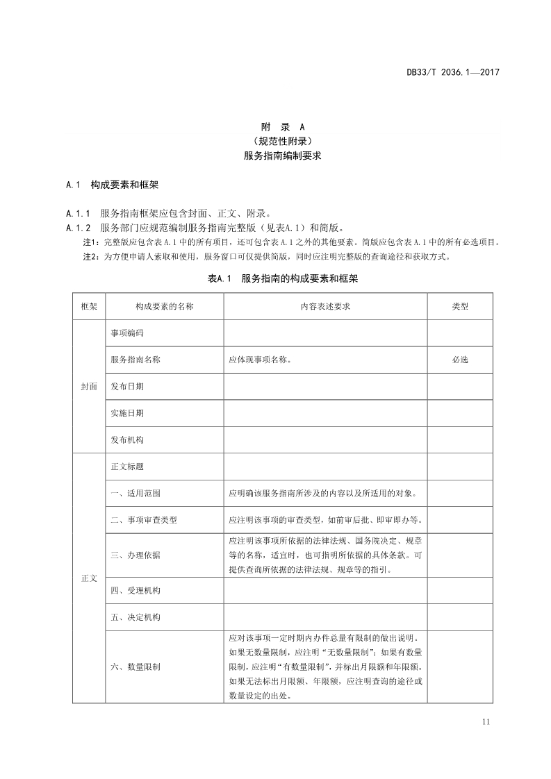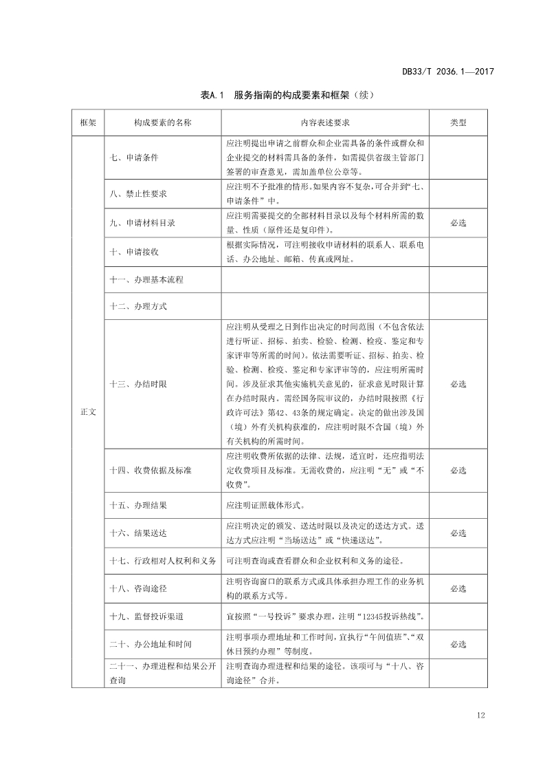 5.8 應(yīng)對每項政務(wù)辦事事項編制服務(wù)指南完整版和簡版,服務(wù)窗口可僅提供簡版,同時應(yīng)注明完整版的查詢途徑和獲取方式,見規(guī)范性附錄 A。