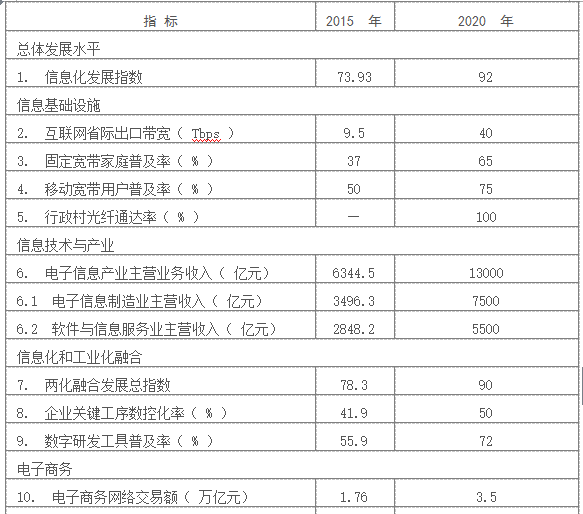 “十三五”信息化發(fā)展主要指標(biāo)