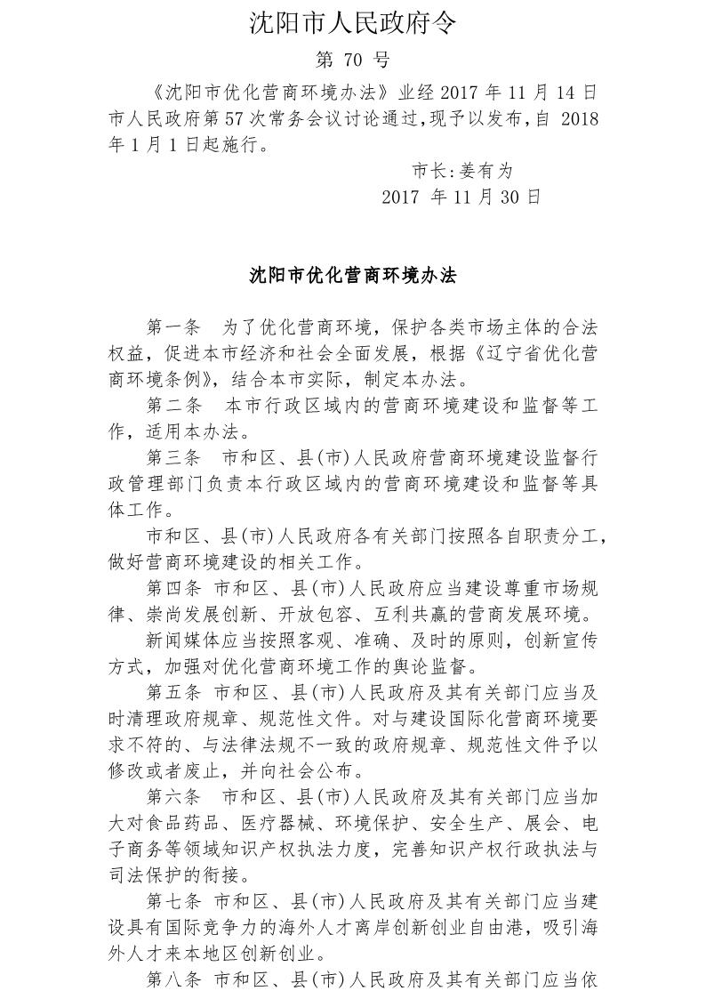 沈陽市優(yōu)化營商環(huán)境辦法