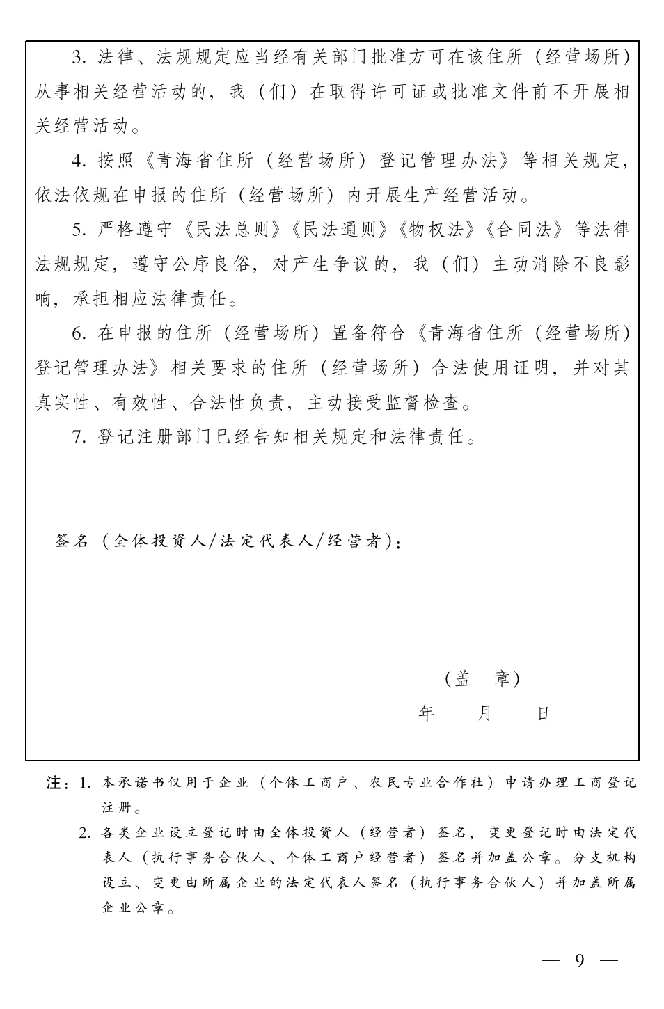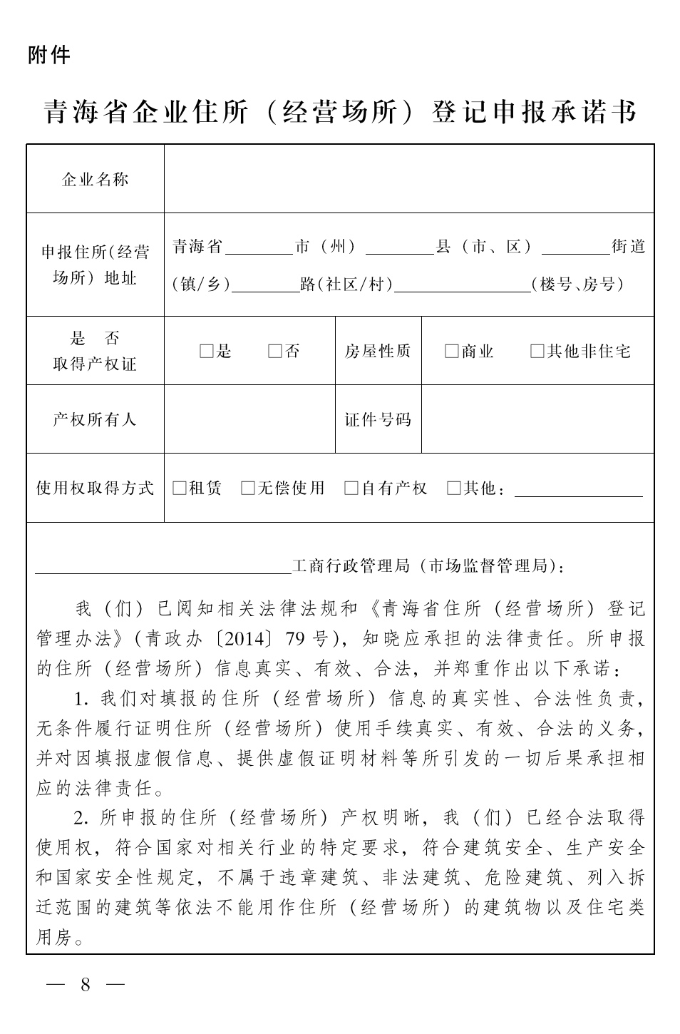 附件:青海省企業(yè)住所(經(jīng)營場所)登記申報(bào)承諾書