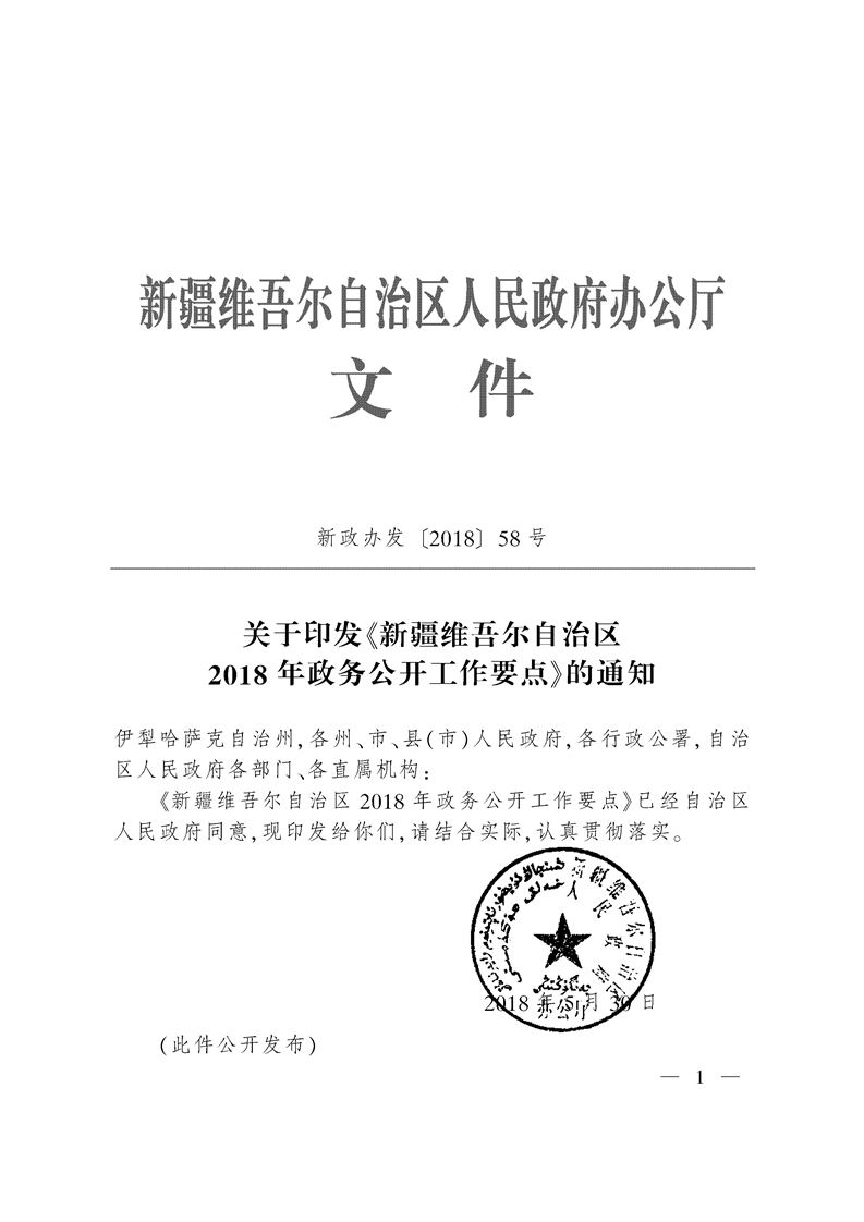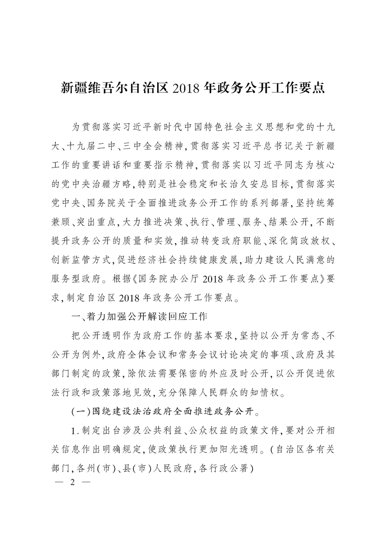 關(guān)于印發(fā)《新疆維吾爾自治區(qū)2018年政務(wù)公開工作要點》的通知