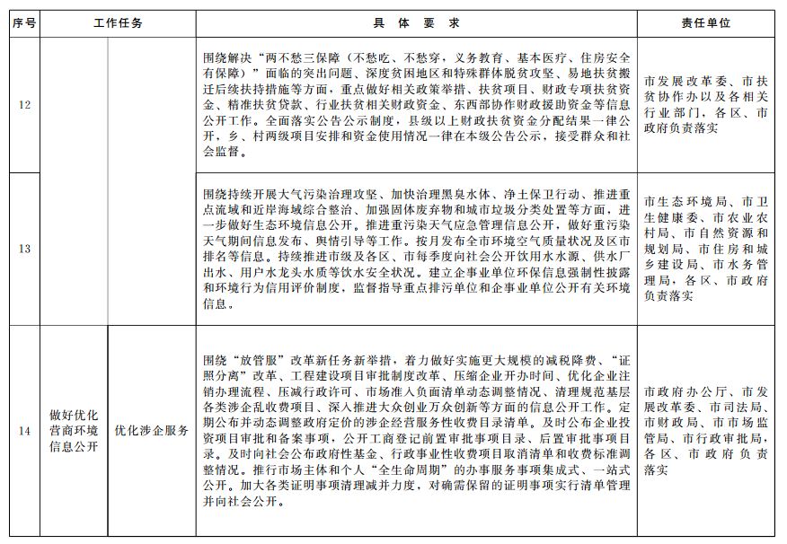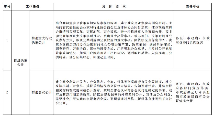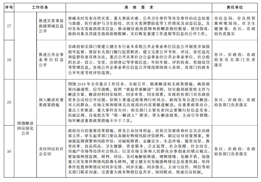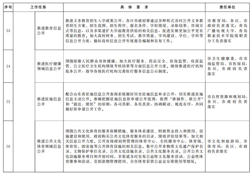 2019年青島市政務(wù)公開(kāi)重點(diǎn)工作任務(wù)分解落實(shí)表
