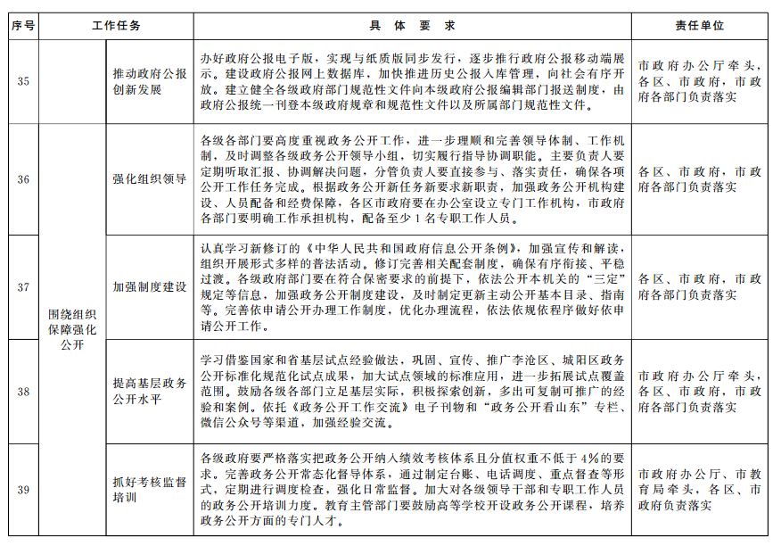 附件:2019年青島市政務(wù)公開(kāi)重點(diǎn)工作任務(wù)分解落實(shí)表