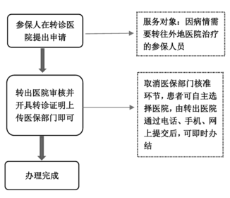 3.簡化轉(zhuǎn)診轉(zhuǎn)院備案報(bào)銷流程。對(duì)因病情治療需要轉(zhuǎn)往外地就診住院治療的參保人員,直接由當(dāng)?shù)剞D(zhuǎn)出醫(yī)院辦理手續(xù),不再經(jīng)醫(yī)保部門核準(zhǔn),參保群眾可在轉(zhuǎn)入的省、市所有聯(lián)網(wǎng)結(jié)算醫(yī)院中自主選擇就醫(yī),取消過去固定1家轉(zhuǎn)診醫(yī)院的要求;同時(shí),需多次轉(zhuǎn)診治療的,辦理一次轉(zhuǎn)診手續(xù)后,一年內(nèi)有效,進(jìn)一步方便患者就醫(yī)報(bào)銷。