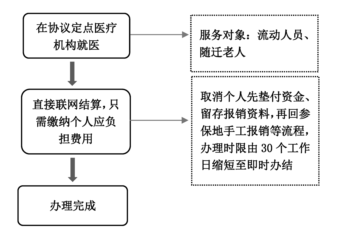 2.推進(jìn)門診慢性病省內(nèi)異地聯(lián)網(wǎng)即時(shí)結(jié)算。在進(jìn)一步擴(kuò)大異地住院費(fèi)用直接聯(lián)網(wǎng)結(jié)算覆蓋范圍的基礎(chǔ)上,再簡化程序,改革門診慢性病異地就醫(yī)個(gè)人先墊付資金再后期手工報(bào)銷流程,辦理時(shí)限由原來30個(gè)工作日變?yōu)槁?lián)網(wǎng)即時(shí)辦結(jié)。對(duì)納入醫(yī)保支付的高血壓、糖尿病等14種(類)門診慢性病實(shí)行省內(nèi)異地就醫(yī)聯(lián)網(wǎng)結(jié)算,實(shí)現(xiàn)醫(yī)療費(fèi)用即時(shí)報(bào)銷。