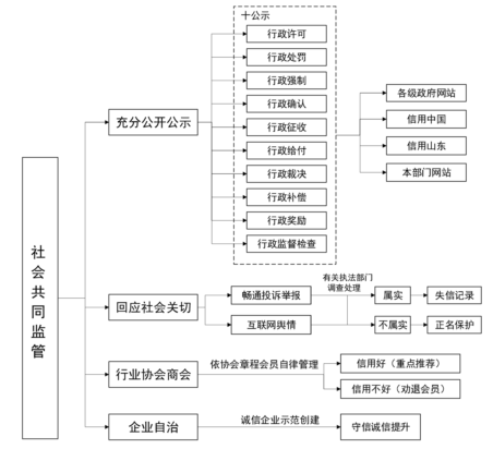 一是依法依規(guī)推動(dòng)信用信息公開公示,做到“應(yīng)公開、盡公開”,從行政許可、行政處罰“雙公示”升級(jí)為行政許可、行政處罰、行政強(qiáng)制、行政確認(rèn)、行政征收、行政給付、行政裁決、行政補(bǔ)償、行政獎(jiǎng)勵(lì)、行政監(jiān)督檢查等“十公示”。二是監(jiān)測(cè)整合12345、12315等各類投訴舉報(bào)信息、互聯(lián)網(wǎng)重大輿情監(jiān)測(cè)信息,經(jīng)有關(guān)部門調(diào)查核實(shí)處理后,納入失信記錄并作為失信信息依法公開公示。三是充分發(fā)揮信用服務(wù)機(jī)構(gòu)和行業(yè)協(xié)會(huì)商會(huì)等社會(huì)力量作用,支持其協(xié)助有關(guān)部門開展第三方監(jiān)管。四是廣泛開展形式多樣的誠信示范企業(yè)創(chuàng)建活動(dòng),引導(dǎo)企業(yè)設(shè)立信用監(jiān)督崗位,加強(qiáng)企業(yè)內(nèi)部誠信管理,提升企業(yè)守法誠信經(jīng)營意識(shí)。