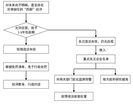 一是完善新興業(yè)態(tài)監(jiān)管模式。對(duì)共享經(jīng)濟(jì)、人工智能、工業(yè)互聯(lián)網(wǎng)等新技術(shù)、新產(chǎn)業(yè)、新業(yè)態(tài)、新模式,量身定制監(jiān)管制度,在守住安全底線的前提下,給予企業(yè)1-3年包容期。二是推行柔性監(jiān)管方式,建立輕微違法行為免罰清單。在包容期內(nèi),以行政指導(dǎo)和服務(wù)為重點(diǎn),通過法規(guī)宣傳、行政提示、行政建議、行政約談等柔性監(jiān)管方式,積極引導(dǎo)和督促企業(yè)守法誠信經(jīng)營。允許企業(yè)試錯(cuò),對(duì)非主觀故意、沒有造成危害后果的首次輕微違法行為,指導(dǎo)企業(yè)自覺改正,一般不予行政處罰。三是建立輕微或一般違法失信積累關(guān)注機(jī)制。對(duì)市場(chǎng)主體在短期內(nèi)反復(fù)出現(xiàn)的多次違法失信行為,及時(shí)提醒約談;經(jīng)提醒仍無改觀的,移入重點(diǎn)關(guān)注企業(yè)名單,向有關(guān)部門發(fā)出監(jiān)管風(fēng)險(xiǎn)預(yù)警。四是建立集體會(huì)商制度。相關(guān)部門牽頭邀請(qǐng)法律專家、“四新”經(jīng)濟(jì)專業(yè)人士、企業(yè)家參與,定期研究磋商“四新”經(jīng)濟(jì)監(jiān)管政策,及時(shí)制定個(gè)性化監(jiān)管方案,為其發(fā)展提供充足的空間。五是劃定監(jiān)管紅線,對(duì)P2P網(wǎng)貸、私募股權(quán)融資等領(lǐng)域,以創(chuàng)新之名行侵權(quán)欺詐之實(shí)的偽新興項(xiàng)目,依法嚴(yán)懲,絕不姑息。