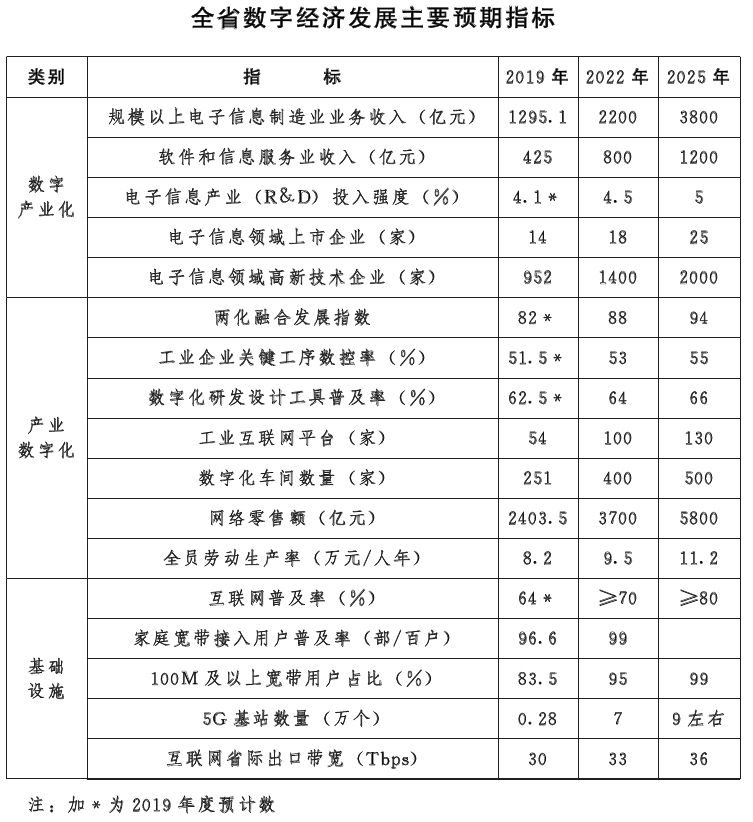 ?。ㄈ┌l(fā)展目標(biāo)。到2022年,大數(shù)據(jù)創(chuàng)新應(yīng)用體系基本形成,制造業(yè)數(shù)字化轉(zhuǎn)型取得突破性進(jìn)展,農(nóng)業(yè)、服務(wù)業(yè)數(shù)字化水平顯著提升,信息化公共服務(wù)能力明顯提高,建成一批包容性強(qiáng)、適應(yīng)性廣、政策環(huán)境優(yōu)的數(shù)字場(chǎng)景應(yīng)用市場(chǎng),基本形成以大數(shù)據(jù)產(chǎn)業(yè)、制造業(yè)數(shù)字化、服務(wù)業(yè)數(shù)字化、電子信息產(chǎn)業(yè)為支撐的數(shù)字經(jīng)濟(jì)發(fā)展格局。