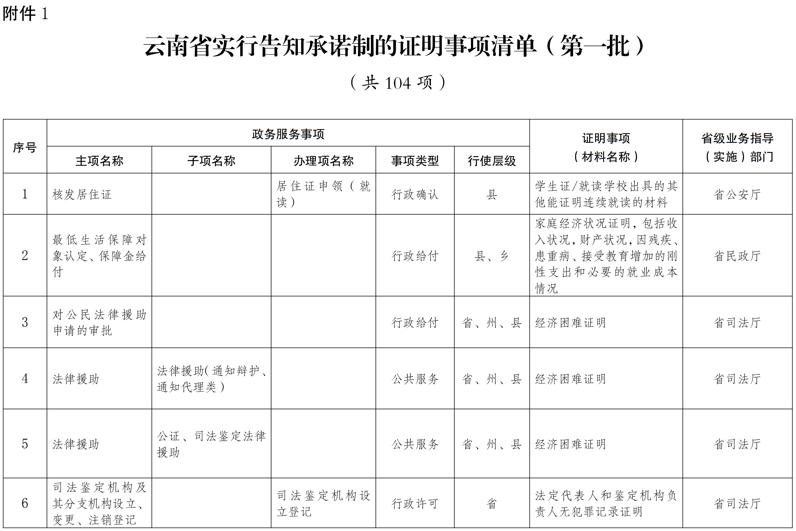 附件:1.云南省實(shí)行告知承諾制的證明事項(xiàng)清單(第一批)