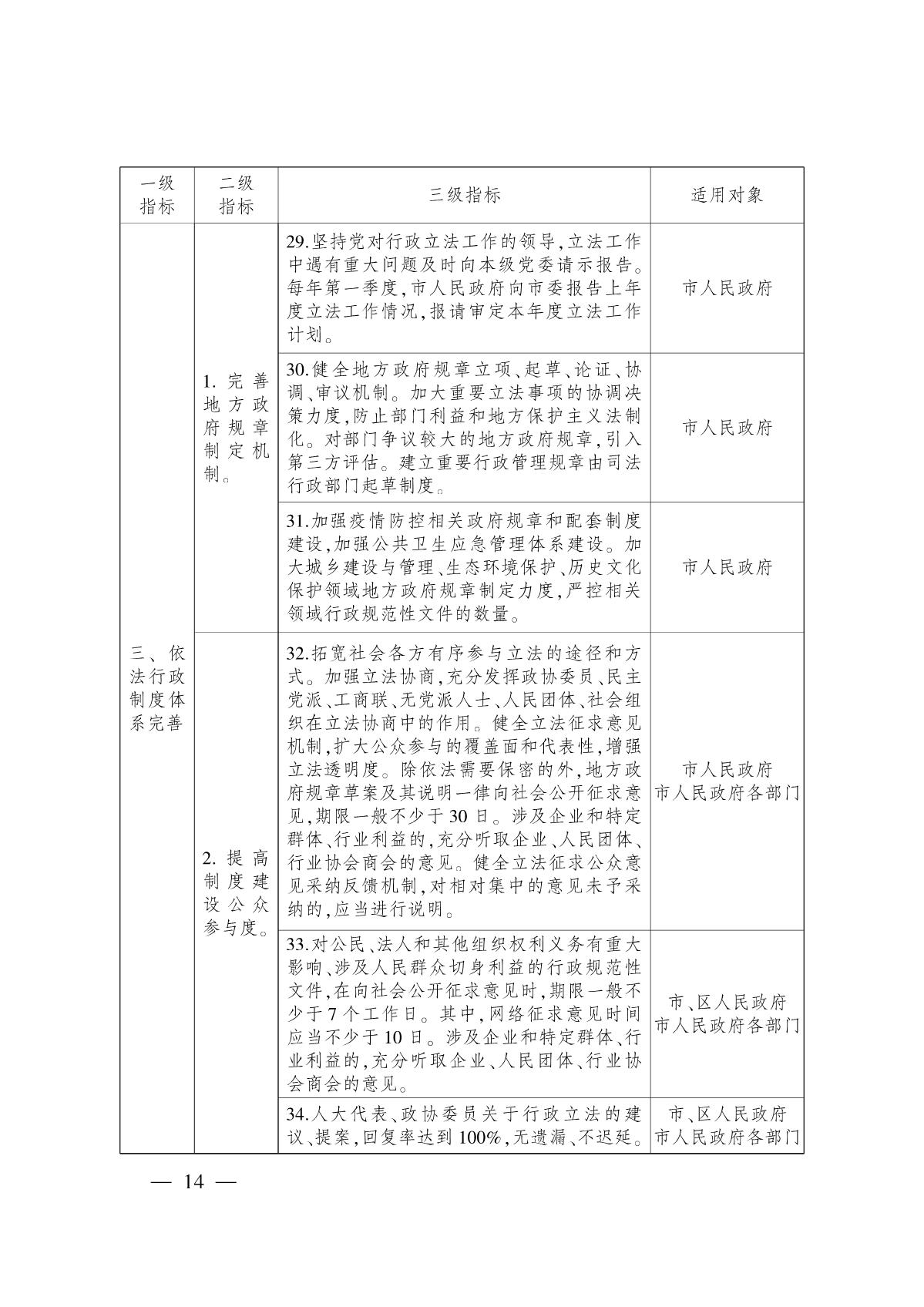 ?。ㄈ┘訌?qiáng)政府立法和行政規(guī)范性文件監(jiān)管,構(gòu)建系統(tǒng)完備、科學(xué)規(guī)范、運(yùn)行有效的依法行政制度體系。加強(qiáng)重點(diǎn)領(lǐng)域立法,圍繞推動(dòng)創(chuàng)新驅(qū)動(dòng)發(fā)展、優(yōu)化營(yíng)商環(huán)境、實(shí)現(xiàn)城市精細(xì)化管理、加強(qiáng)民生幸福保障、加強(qiáng)生態(tài)文明建設(shè)、促進(jìn)文化繁榮發(fā)展、強(qiáng)化疫情防控和公共衛(wèi)生應(yīng)急管理體系建設(shè)等重要領(lǐng)域,加快推進(jìn)經(jīng)濟(jì)社會(huì)發(fā)展急需的政府立法。深入推進(jìn)科學(xué)立法、民主立法、依法立法,嚴(yán)格履行政府規(guī)章和行政規(guī)范性文件制定、備案程序,強(qiáng)化公眾參與、審查審核和評(píng)估論證工作,加強(qiáng)基層立法聯(lián)系點(diǎn)建設(shè),推動(dòng)完善行政規(guī)范性文件統(tǒng)一發(fā)布機(jī)制。加快特定領(lǐng)域的地方性法規(guī)、政府規(guī)章和行政規(guī)范性文件清理進(jìn)度,清理結(jié)果向社會(huì)公布,并及時(shí)做好立改廢工作。