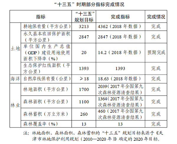 “十三五”時(shí)期,本市堅(jiān)持以習(xí)近平新時(shí)代中國特色社會(huì)主義思想為指導(dǎo),整合組建了天津市規(guī)劃和自然資源局,科學(xué)推進(jìn)國土空間規(guī)劃,嚴(yán)格保護(hù)自然資源,集約節(jié)約利用自然資源,加強(qiáng)生態(tài)修復(fù)保護(hù),保障經(jīng)濟(jì)社會(huì)持續(xù)較快發(fā)展,全面完成“十三五”時(shí)期確定的土地、海洋、林業(yè)等各類約束性指標(biāo),各項(xiàng)工作取得了新進(jìn)展、新成效。