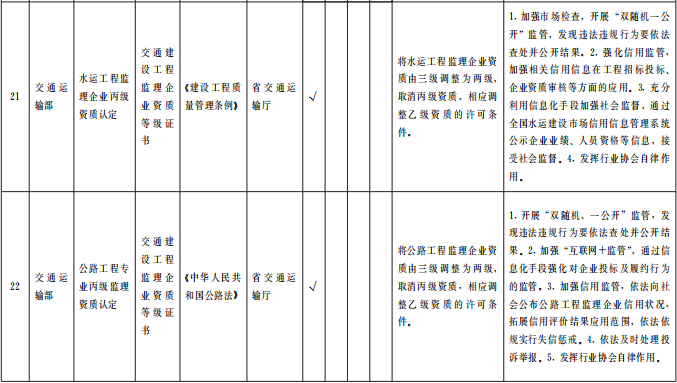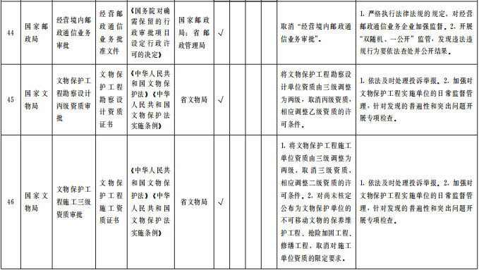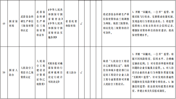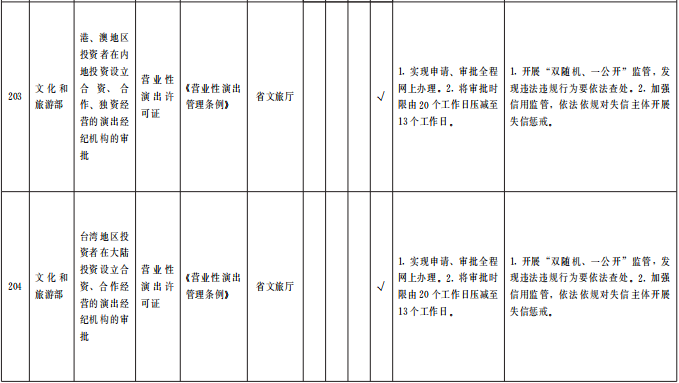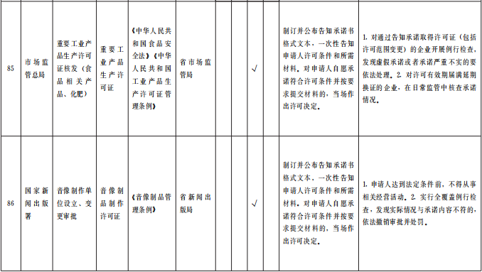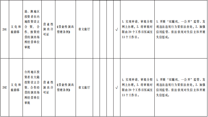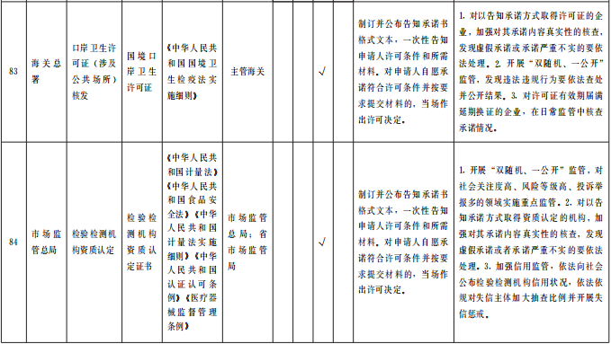 ?。ㄒ唬┲苯尤∠麑徟?/strong>對(duì)中央事項(xiàng)清單中52項(xiàng)直接取消審批的涉企經(jīng)營(yíng)許可事項(xiàng),企業(yè)持有營(yíng)業(yè)執(zhí)照即可開(kāi)展經(jīng)營(yíng),各級(jí)主管部門(mén)不再開(kāi)展審批、不再出具相關(guān)行政許可證。國(guó)家層面改革政策和標(biāo)準(zhǔn)未正式發(fā)布的,要做好銜接工作,確保改革平穩(wěn)過(guò)渡。(責(zé)任單位:省直有關(guān)部門(mén)、中央在甘有關(guān)單位,各市州政府、蘭州新區(qū)管委會(huì))