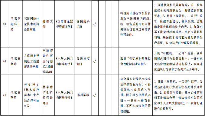 (二)對(duì)中央事項(xiàng)清單和省級(jí)事項(xiàng)清單實(shí)行動(dòng)態(tài)管理。根據(jù)法律、行政法規(guī)、國(guó)務(wù)院決定和地方性法規(guī)、省級(jí)政府規(guī)章的立改廢釋,及時(shí)調(diào)整落實(shí)中央事項(xiàng)清單和省級(jí)事項(xiàng)清單。對(duì)需調(diào)整改革方式、具體改革舉措、事中事后監(jiān)管措施等重點(diǎn)內(nèi)容的涉企經(jīng)營(yíng)許可事項(xiàng),由省級(jí)主管部門(mén)研究提出調(diào)整意見(jiàn),經(jīng)省司法廳合法性審核后,報(bào)省政府審改辦審定并向社會(huì)公布,防止變相審批和違規(guī)限制。(牽頭單位:省司法廳;責(zé)任單位:省直有關(guān)部門(mén)、中央在甘有關(guān)單位)