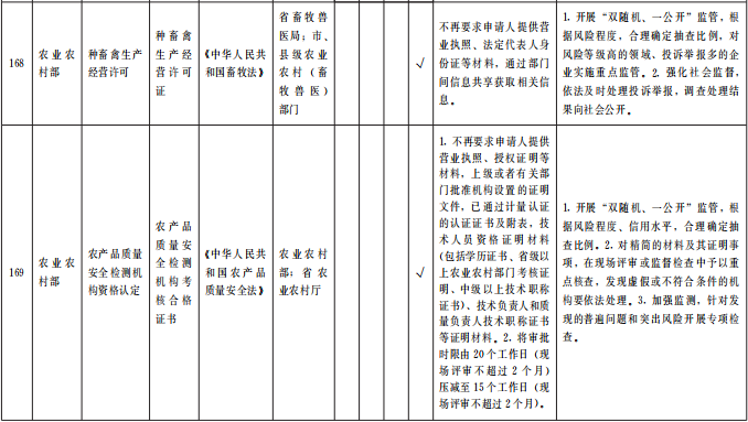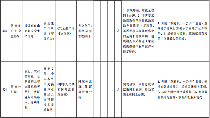 (三)創(chuàng)新監(jiān)管方法。推進(jìn)“互聯(lián)網(wǎng)+監(jiān)管”,省級(jí)各主管部門(mén)要對(duì)照中央和省級(jí)事項(xiàng)清單,同步梳理更新本行業(yè)“互聯(lián)網(wǎng)+監(jiān)管”事項(xiàng)清單,確保清單事項(xiàng)內(nèi)容一一對(duì)應(yīng)。對(duì)國(guó)家規(guī)定“一般經(jīng)營(yíng)事項(xiàng)”的行業(yè)、領(lǐng)域,全面推行“雙隨機(jī)、一公開(kāi)”監(jiān)管,根據(jù)企業(yè)信用風(fēng)險(xiǎn)分類(lèi)結(jié)果,在日常監(jiān)管中推行對(duì)市場(chǎng)主體實(shí)行差異化監(jiān)管和常態(tài)化跨部門(mén)聯(lián)合抽查,對(duì)信用較好、風(fēng)險(xiǎn)較低的市場(chǎng)主體,合理降低抽查比例和頻次,為守信企業(yè)減負(fù)。(牽頭單位:省市場(chǎng)監(jiān)管局;責(zé)任單位:省直有關(guān)部門(mén)、中央在甘有關(guān)單位,各市州政府、蘭州新區(qū)管委會(huì))