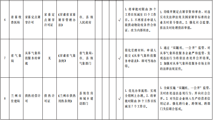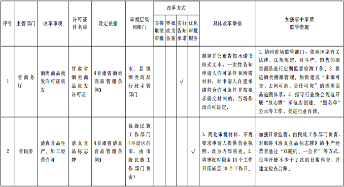 甘肅省落實(shí)中央層面設(shè)定的涉企經(jīng)營(yíng)許可事項(xiàng)改革清單(2021全省版)