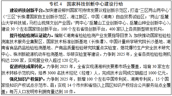 1.科技服務(wù)。圍繞產(chǎn)業(yè)鏈、部署創(chuàng)新鏈、完善服務(wù)鏈,促進(jìn)科技服務(wù)業(yè)專業(yè)化、集成化發(fā)展,構(gòu)建覆蓋創(chuàng)新全鏈條、產(chǎn)品生產(chǎn)全周期的科技服務(wù)體系,打造國家科技創(chuàng)新中心。力爭到2025年,研發(fā)經(jīng)費(fèi)投入年均增速高于12%。提升研究開發(fā)能力。圍繞我省核心產(chǎn)業(yè)創(chuàng)新與發(fā)展需求,鼓勵(lì)企業(yè)開展協(xié)同研發(fā)創(chuàng)新,重點(diǎn)建設(shè)一批國家級(jí)重點(diǎn)實(shí)驗(yàn)室、技術(shù)創(chuàng)新中心、新型研發(fā)機(jī)構(gòu)等,推動(dòng)大科學(xué)裝置及重大科技基礎(chǔ)設(shè)施建設(shè),打造湖南省科研設(shè)施和科研儀器開放共享服務(wù)平臺(tái)。大力發(fā)展設(shè)計(jì)服務(wù)。重點(diǎn)發(fā)展工業(yè)設(shè)計(jì)、工程設(shè)計(jì)、平面設(shè)計(jì)、文化創(chuàng)意設(shè)計(jì)等,培育一批具有國際競爭力的設(shè)計(jì)企業(yè),打造一批以產(chǎn)業(yè)集群為依托的設(shè)計(jì)產(chǎn)業(yè)集聚區(qū)。圍繞裝備制造、信息服務(wù)、消費(fèi)品工業(yè)等領(lǐng)域,創(chuàng)建一批國家、省級(jí)工業(yè)設(shè)計(jì)中心和工業(yè)設(shè)計(jì)研究院,促進(jìn)“湖南制造”向“湖南創(chuàng)造”轉(zhuǎn)變。提高檢驗(yàn)檢測認(rèn)證服務(wù)水平。加快推進(jìn)湖南省檢驗(yàn)檢測特色產(chǎn)業(yè)園建設(shè),大力發(fā)展基礎(chǔ)檢測服務(wù),培育第三方質(zhì)量安全技術(shù)服務(wù),積極開展線上檢驗(yàn)檢測認(rèn)證,發(fā)展面向設(shè)計(jì)開發(fā)、生產(chǎn)制造、售后服務(wù)全過程的分析、測試、檢驗(yàn)、認(rèn)證等一體化服務(wù)。完善創(chuàng)新創(chuàng)業(yè)孵化孵育功能。鼓勵(lì)發(fā)展創(chuàng)新工場、虛擬創(chuàng)新社區(qū)等新型孵化平臺(tái),加快科技孵化器、眾創(chuàng)空間、星創(chuàng)天地等“雙創(chuàng)”平臺(tái)建設(shè),不斷提升孵化載體專業(yè)化服務(wù)水平。提高技術(shù)轉(zhuǎn)移轉(zhuǎn)化率。發(fā)展技術(shù)交易、技術(shù)評(píng)估、技術(shù)投融資等服務(wù),建設(shè)專業(yè)性、綜合性、市場化的科技成果轉(zhuǎn)移轉(zhuǎn)化機(jī)構(gòu)。推動(dòng)高校、科研院所、產(chǎn)業(yè)聯(lián)盟、工程中心等面向市場開展中試小試、技術(shù)熟化等集成服務(wù)。健全知識(shí)產(chǎn)權(quán)服務(wù)體系。加快知識(shí)產(chǎn)權(quán)交易運(yùn)營機(jī)構(gòu)建設(shè),促進(jìn)大數(shù)據(jù)、區(qū)塊鏈等在知識(shí)產(chǎn)權(quán)保護(hù)中的運(yùn)用,探索發(fā)展知識(shí)產(chǎn)權(quán)創(chuàng)造與運(yùn)營的眾籌、眾包模式。鼓勵(lì)發(fā)展科技咨詢服務(wù)。開展科技評(píng)估、科技管理服務(wù)外包、項(xiàng)目管理外包、知識(shí)產(chǎn)權(quán)代理等服務(wù),促進(jìn)科技信息資源市場化開發(fā)利用。