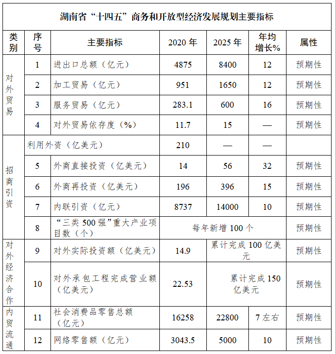 湖南省“十四五”商務(wù)和開放型經(jīng)濟(jì)發(fā)展規(guī)劃