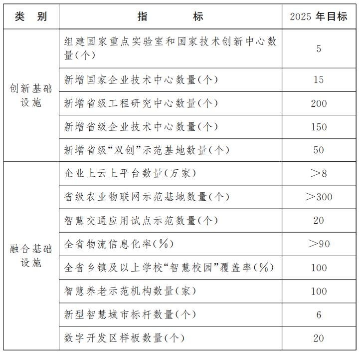 到2025年,基本建成高速泛在、智能敏捷、綜合集成、安全可信的新型基礎(chǔ)設(shè)施體系,“感—傳—存—算—用”綜合數(shù)字能力顯著增強(qiáng),經(jīng)濟(jì)社會各領(lǐng)域數(shù)字化、網(wǎng)絡(luò)化、智能化發(fā)展水平大幅提升,創(chuàng)新基礎(chǔ)設(shè)施水平穩(wěn)步增強(qiáng),有力支撐全省高質(zhì)量跨越式發(fā)展。