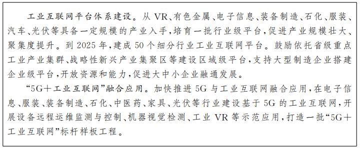 推進(jìn)工業(yè)互聯(lián)網(wǎng)建設(shè)。加快建設(shè)覆蓋全省的高質(zhì)量外網(wǎng),推動工業(yè)企業(yè)、工業(yè)互聯(lián)網(wǎng)平臺、標(biāo)識解析節(jié)點、安全設(shè)施等接入。鼓勵工業(yè)企業(yè)利用5G、工業(yè)無源光網(wǎng)絡(luò)、工業(yè)以太網(wǎng)、工業(yè)無線網(wǎng)等先進(jìn)適用技術(shù)對內(nèi)網(wǎng)升級改造,探索在既有系統(tǒng)上疊加部署新網(wǎng)絡(luò)、新系統(tǒng),推動信息技術(shù)(IT)網(wǎng)絡(luò)與運(yùn)營技術(shù)(OT)網(wǎng)絡(luò)融合。加快標(biāo)識解析體系建設(shè),在服裝、電子信息、鋰電新材料、有色金屬、陶瓷、家具、中醫(yī)藥等領(lǐng)域,爭取建設(shè)運(yùn)營一批工業(yè)互聯(lián)網(wǎng)標(biāo)識解析二級節(jié)點。加快工業(yè)互聯(lián)網(wǎng)公共遞歸解析節(jié)點建設(shè),保障工業(yè)互聯(lián)網(wǎng)解析服務(wù)性能。培育一批企業(yè)級、行業(yè)級、區(qū)域級工業(yè)互聯(lián)網(wǎng)平臺,形成各有側(cè)重、協(xié)同集聚發(fā)展的工業(yè)互聯(lián)網(wǎng)平臺體系。加大工業(yè)場景應(yīng)用開發(fā)和應(yīng)用,推動中小微企業(yè)數(shù)字化工具普及,形成建平臺和用平臺雙向迭代、互促共進(jìn)的良好生態(tài)。