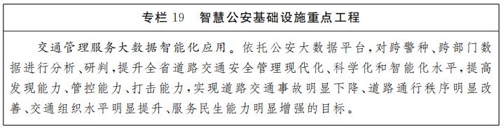 智慧公安基礎(chǔ)設(shè)施建設(shè)。深化公安大數(shù)據(jù)智能化建設(shè),升級完善省市兩級公安大數(shù)據(jù)平臺,實現(xiàn)智能化的情報分析研判、預(yù)警預(yù)測預(yù)防、精準(zhǔn)管控打擊、精細(xì)管理服務(wù)。推進(jìn)智慧交管建設(shè),強(qiáng)化交通管理大數(shù)據(jù)應(yīng)用,通過科學(xué)、精準(zhǔn)預(yù)判安全風(fēng)險,提升道路安全防控、城市交通治理、交通違法管控、公安交管服務(wù)等能力。完善交管各類平臺系統(tǒng),織密道路交通感知網(wǎng)絡(luò),構(gòu)建以智能感知、智能計算、智能認(rèn)知、智能應(yīng)用為支撐的智慧交通管理體系。加強(qiáng)公安技偵平臺系統(tǒng)建設(shè)和專用裝備建設(shè),深入研究5G、物聯(lián)網(wǎng)、區(qū)塊鏈、AI等新技術(shù)新應(yīng)用,有效提升涉網(wǎng)犯罪偵查打擊、電子數(shù)據(jù)勘查取證和技術(shù)對抗等能力。持續(xù)推進(jìn)“雪亮工程”建設(shè),推動公共安全視頻監(jiān)控建設(shè)和聯(lián)網(wǎng)應(yīng)用,提高視頻監(jiān)控點位覆蓋率和高清率,全面提升社會治安防控水平和城市社會治理現(xiàn)代化能力。