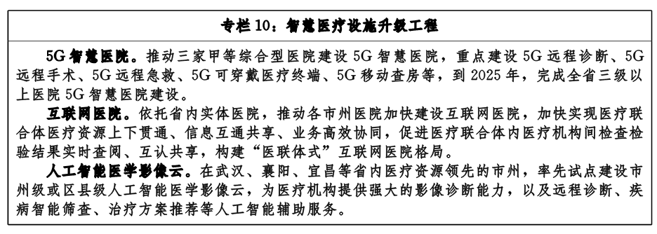 推進(jìn)智慧醫(yī)院建設(shè)。圍繞智慧醫(yī)療、智慧服務(wù)、智慧管理三個(gè)方面,加快同濟(jì)、協(xié)和、省人民醫(yī)院等綜合型醫(yī)院智慧醫(yī)院建設(shè)。推動(dòng)省級(jí)、市級(jí)人工智能醫(yī)療影像云和人工智能輔助診療平臺(tái)建設(shè),提升醫(yī)聯(lián)體內(nèi)成員的影像篩查和輔助診療能力。加快省級(jí)醫(yī)療專(zhuān)網(wǎng)、遠(yuǎn)程醫(yī)療服務(wù)平臺(tái)和視頻云服務(wù)平臺(tái)建設(shè),推動(dòng)各醫(yī)療機(jī)構(gòu)利用互聯(lián)網(wǎng)或?qū)>W(wǎng)開(kāi)展遠(yuǎn)程醫(yī)療服務(wù)。推動(dòng)省內(nèi)互聯(lián)網(wǎng)醫(yī)療服務(wù)平臺(tái)與多類(lèi)型、多層次醫(yī)療服務(wù)主體合作,促進(jìn)優(yōu)質(zhì)醫(yī)療資源下沉,提供線(xiàn)上線(xiàn)下相結(jié)合的全流程醫(yī)療服務(wù)。推動(dòng)建立醫(yī)院綜合運(yùn)營(yíng)管理系統(tǒng)、醫(yī)療廢棄物管理系統(tǒng)、智能設(shè)備監(jiān)控系統(tǒng)、智能能源管控系統(tǒng)等,提升醫(yī)院管理智慧化水平。探索利用人工智能技術(shù)對(duì)醫(yī)療資源進(jìn)行智能化調(diào)度,提高資源調(diào)度效率。