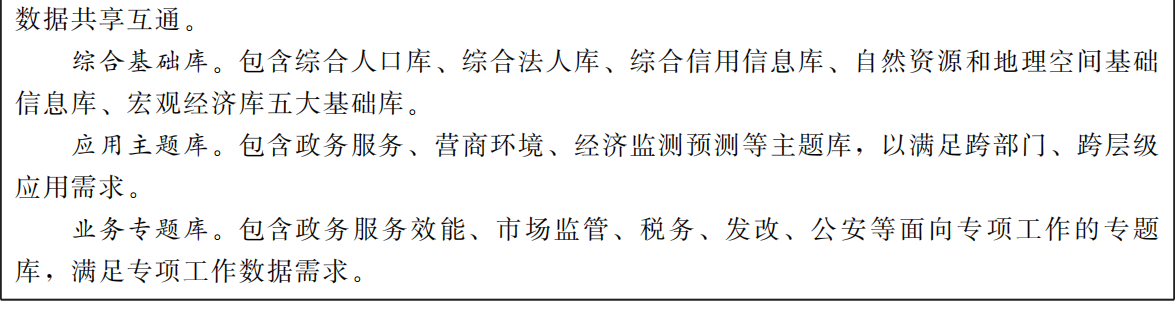 建設(shè)數(shù)據(jù)資產(chǎn)管理庫。推動各級各部門政務(wù)數(shù)據(jù)資源向大數(shù)據(jù)中心匯聚,根據(jù)統(tǒng)一標(biāo)準(zhǔn)規(guī)范,構(gòu)建綜合人口庫、綜合法人庫、綜合信用信息庫、自然資源和地理空間基礎(chǔ)信息庫、宏觀經(jīng)濟(jì)庫五大基礎(chǔ)庫,構(gòu)建事項(xiàng)庫、辦件庫和材料庫等主題庫及“省內(nèi)通辦”“跨省通辦”“一件事一次辦”等專題庫。提升數(shù)據(jù)共享效率,優(yōu)化辦事流程,滿足不動產(chǎn)登記、社會保障、戶籍辦理、企業(yè)設(shè)立變更、準(zhǔn)營準(zhǔn)辦等重點(diǎn)領(lǐng)域,以及人口、法人、教育、婚姻、生育、住房等普遍性數(shù)據(jù)需求。